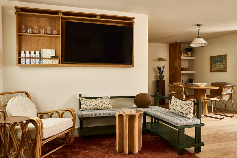 Our Two Bedroom Suite is tailor-made for extended stays or family getaways and is fully accessible. The separate living area is outfitted with a comfortable sleeper sofa, ideal for accommodating additional guests or a cozy spot to unwind. The suite’s full kitchen is equipped with modern appliances, including a refrigerator, stovetop, and dishwasher, as well as cookware, utensils, and a dining table.